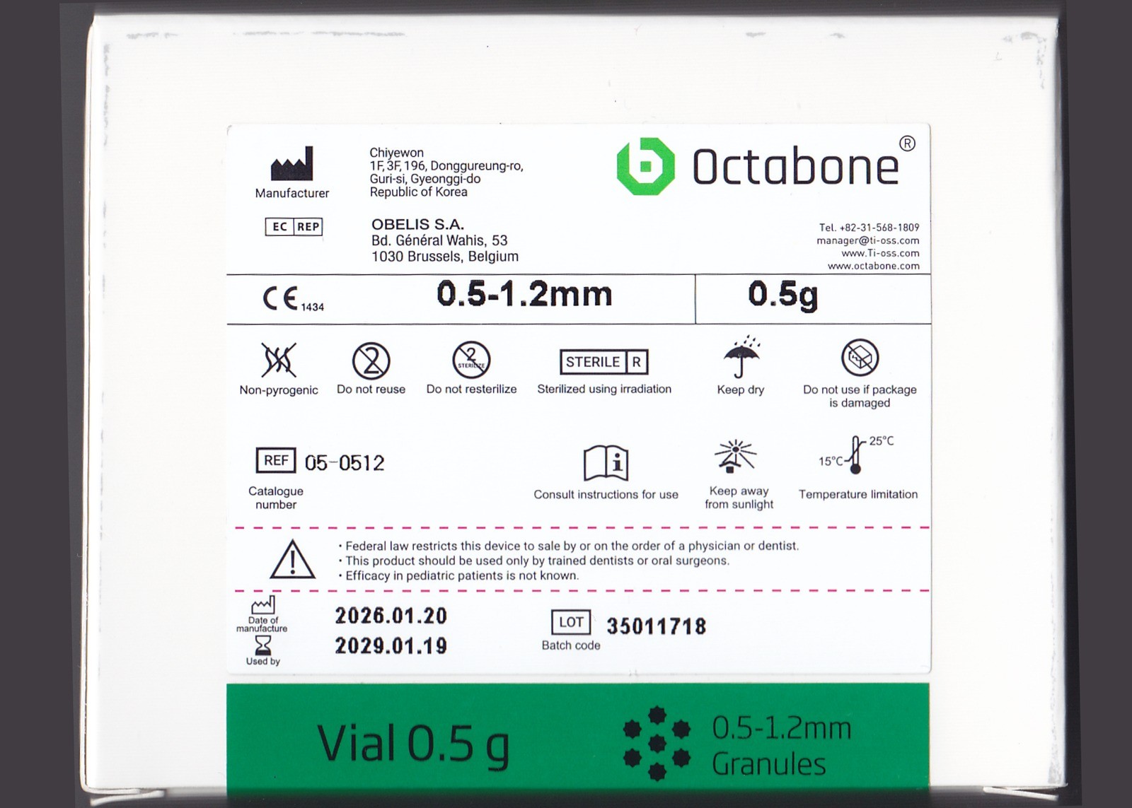 Octabone GTR ve GBR amacıyla kullanılan ürünlerle veya tek başına oral ve maksillofasiyal kemik defektlerinin rejenarasyonu ve augmentasyonu için tasarlanmıştır.
